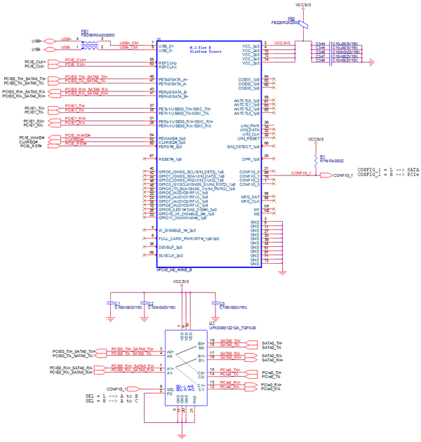 If the M.2 socket is used for a PCIe based storage device, pin 43 must be connected to the positive signal of the differential pair used for PCIe Rx.