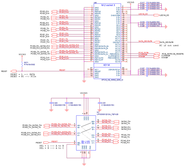 The PEDET signal enables the appropriate host interface. The M.2 expansion card connects the PEDET signal accordingly: