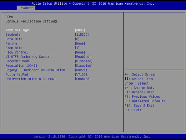 4. Enable Remote Access/Console Redirection. After the Remote Access/Console Redirection has been enabled a series of configuration parameters will appear The above settings specify how the host and the target system will exchange data. Both systems must have the same or compatible settings.
